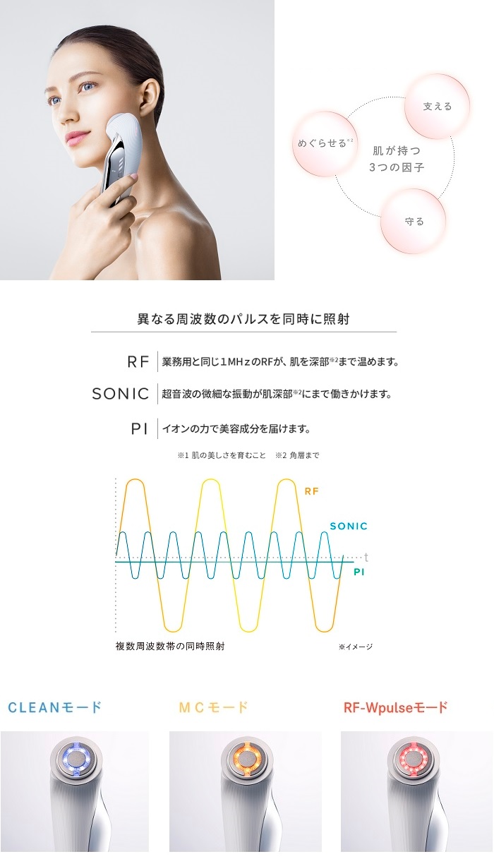 RF、SONIC、PIの3つのパルスを同時に照射するRF-Wpulseが、肌本来の美しさを呼び覚まします。